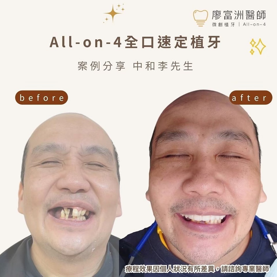 李先生透過 All-on-4全口速定植牙,找回了自然咬合與自在笑容。