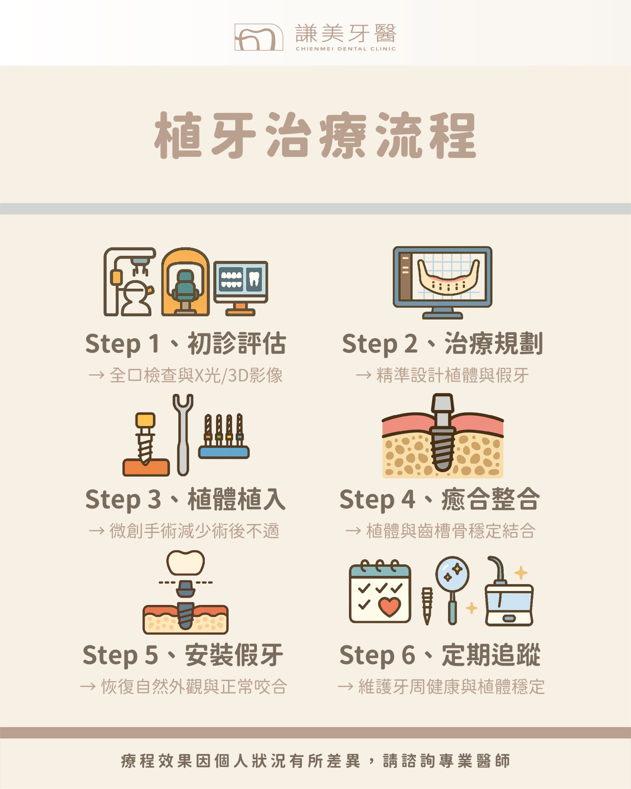 從醫學觀點來說,植牙並非單純的「補上一顆牙」,而是一項結合功能性與長期健康考量的完整治療。對患者而言,這是一份能兼顧飲食品質、外觀美觀與心理自信的投資 🌿。